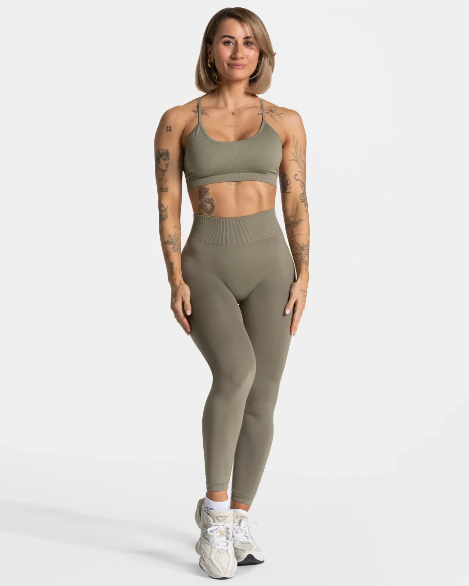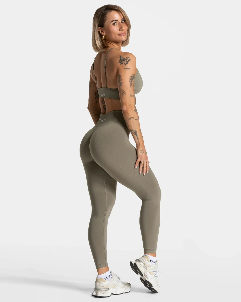 Die Timeless Pro Leggings in Khaki – minimalistisch, schlicht und dennoch funktional. Dank unserer weiterentwickelten Seamless-Technologie bietet die Leggings eine noch höhere Kompression. Ohne Scrunch und Kontur sorgt sie für den idealen Shape, cleane Eleganz und eignet sich somit optimal als deine neue Basic Leggings. Der hochwertige Stoff und der elastische Bund sorgen für eine perfekte Passform und angenehmen Tragekomfort.
