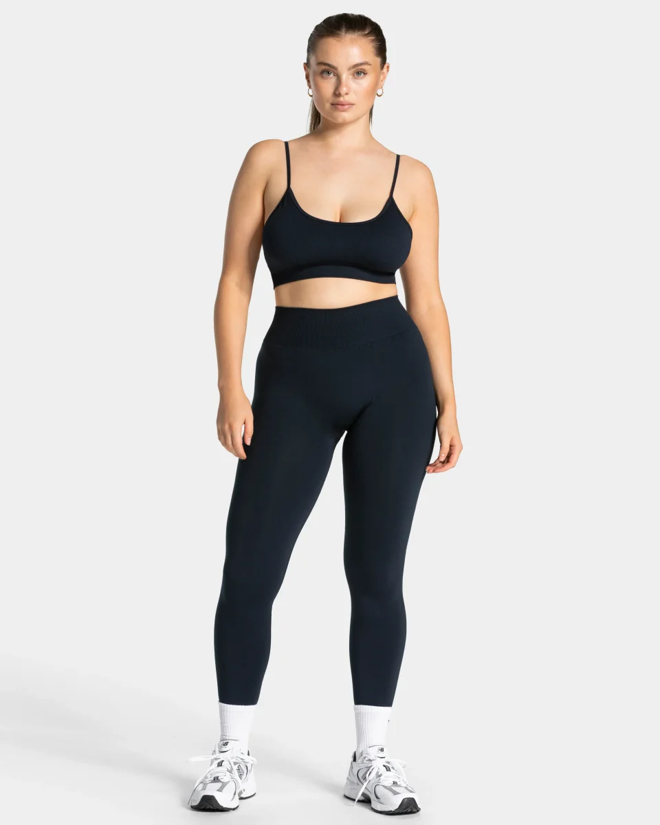 Die Timeless Pro Leggings in Midnight – minimalistisch, schlicht und dennoch funktional. Dank unserer weiterentwickelten Seamless-Technologie bietet die Leggings eine noch höhere Kompression. Ohne Scrunch und Kontur sorgt sie für den idealen Shape, cleane Eleganz und eignet sich somit optimal als deine neue Basic Leggings. Der hochwertige Stoff und der elastische Bund sorgen für eine perfekte Passform und angenehmen Tragekomfort.