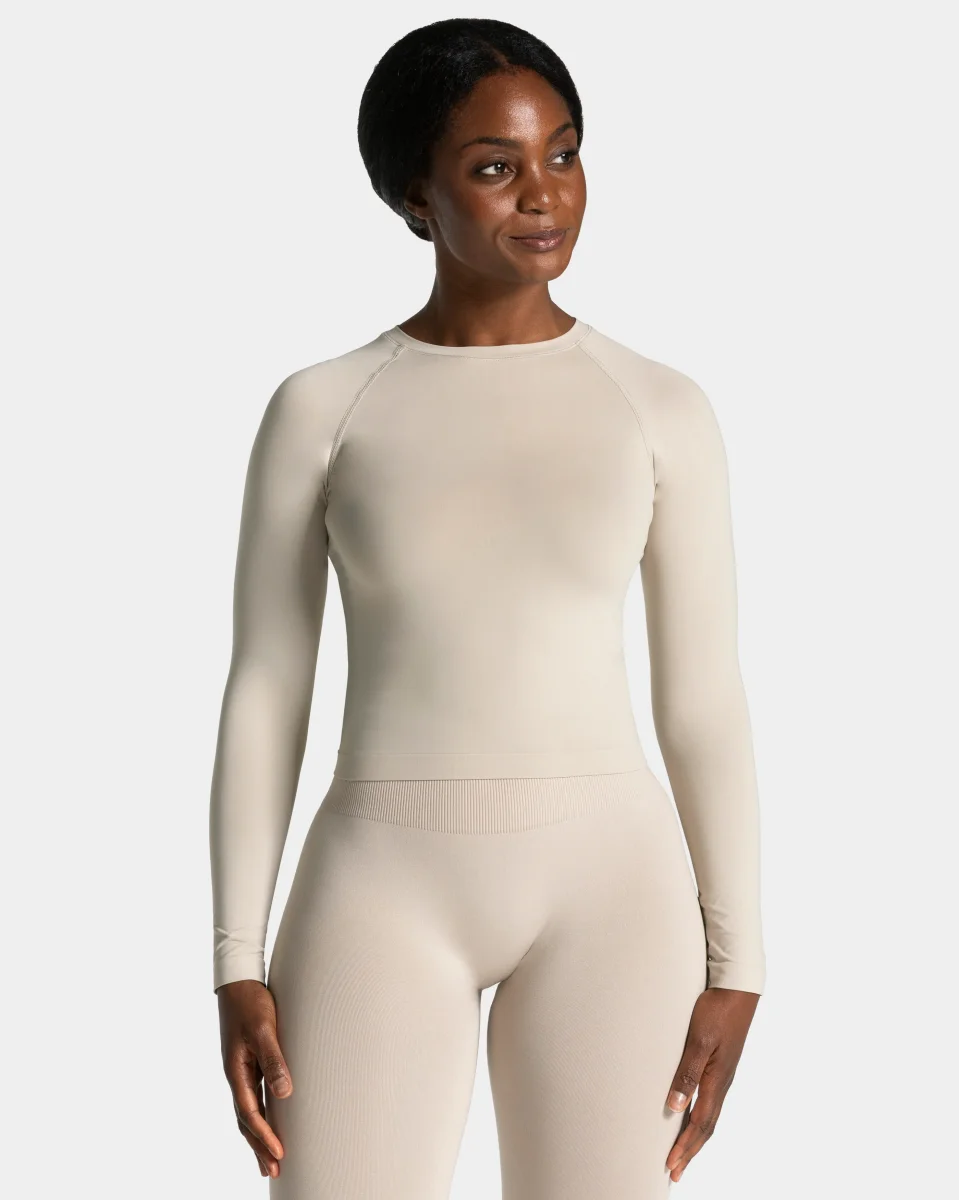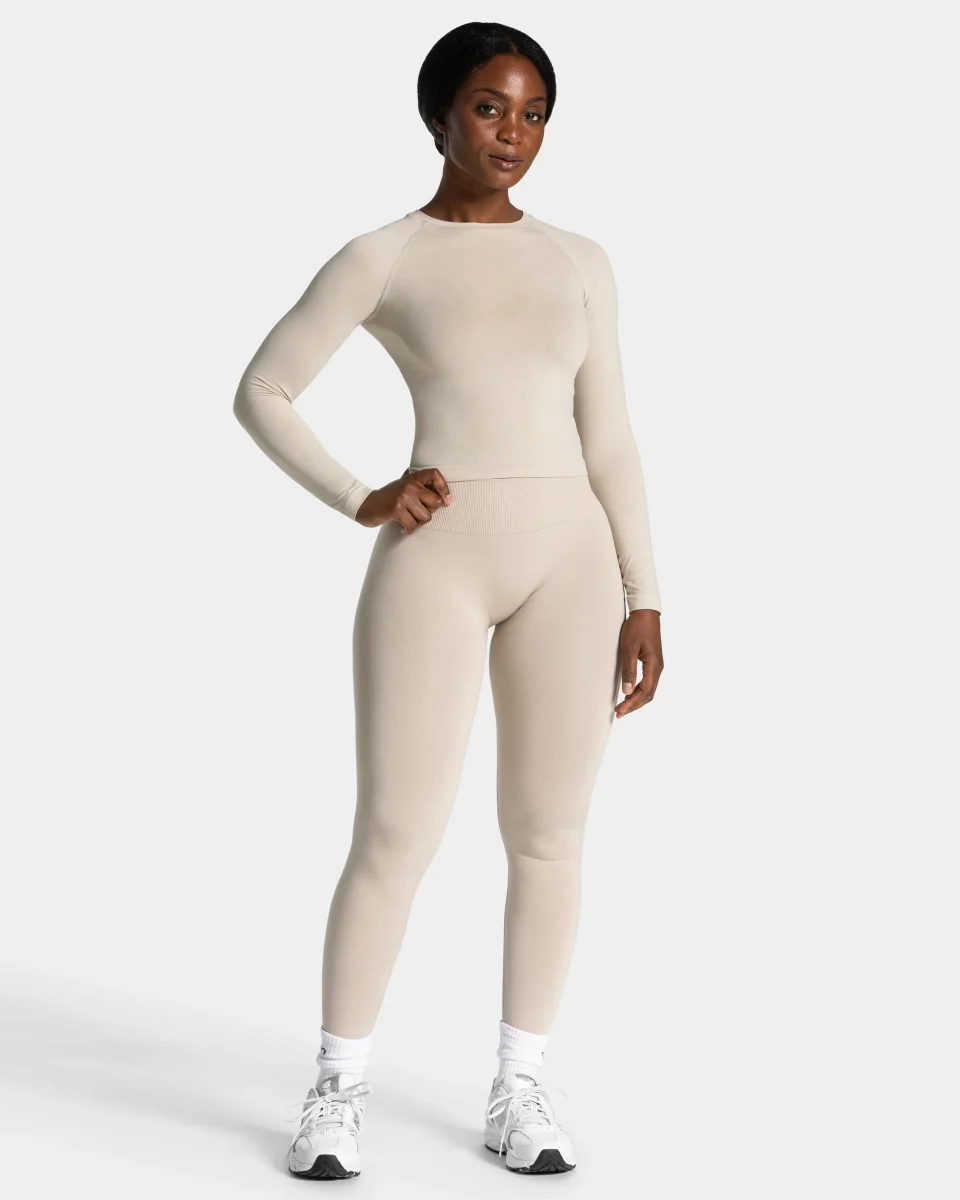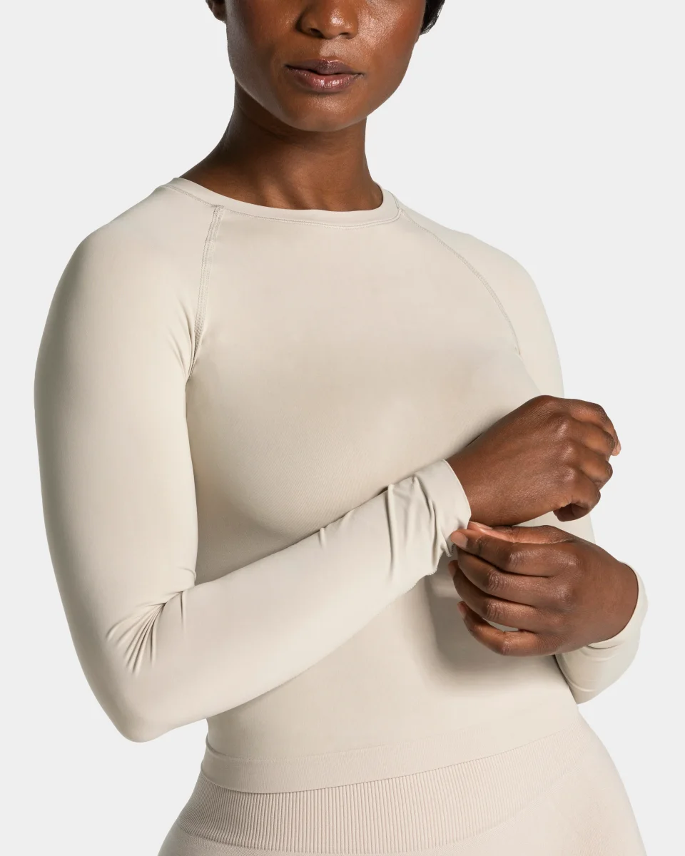 Das Timeless Pro Longsleeve in Cream – second-skin feeling, but better. Ultraleicht, butterweich und nahtlos für ein unvergleichliches Tragegefühl. Das atmungsaktive Material schmiegt sich mühelos an deinen Körper, ohne einzuengen. Maximale Bewegungsfreiheit, pure Eleganz – ein Essential, das Maßstäbe setzt.