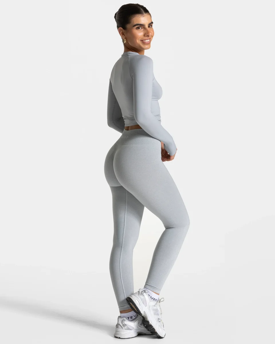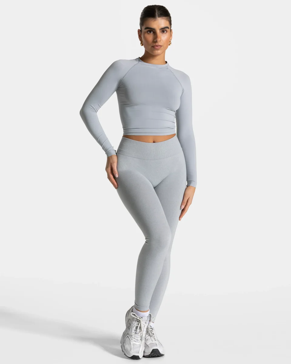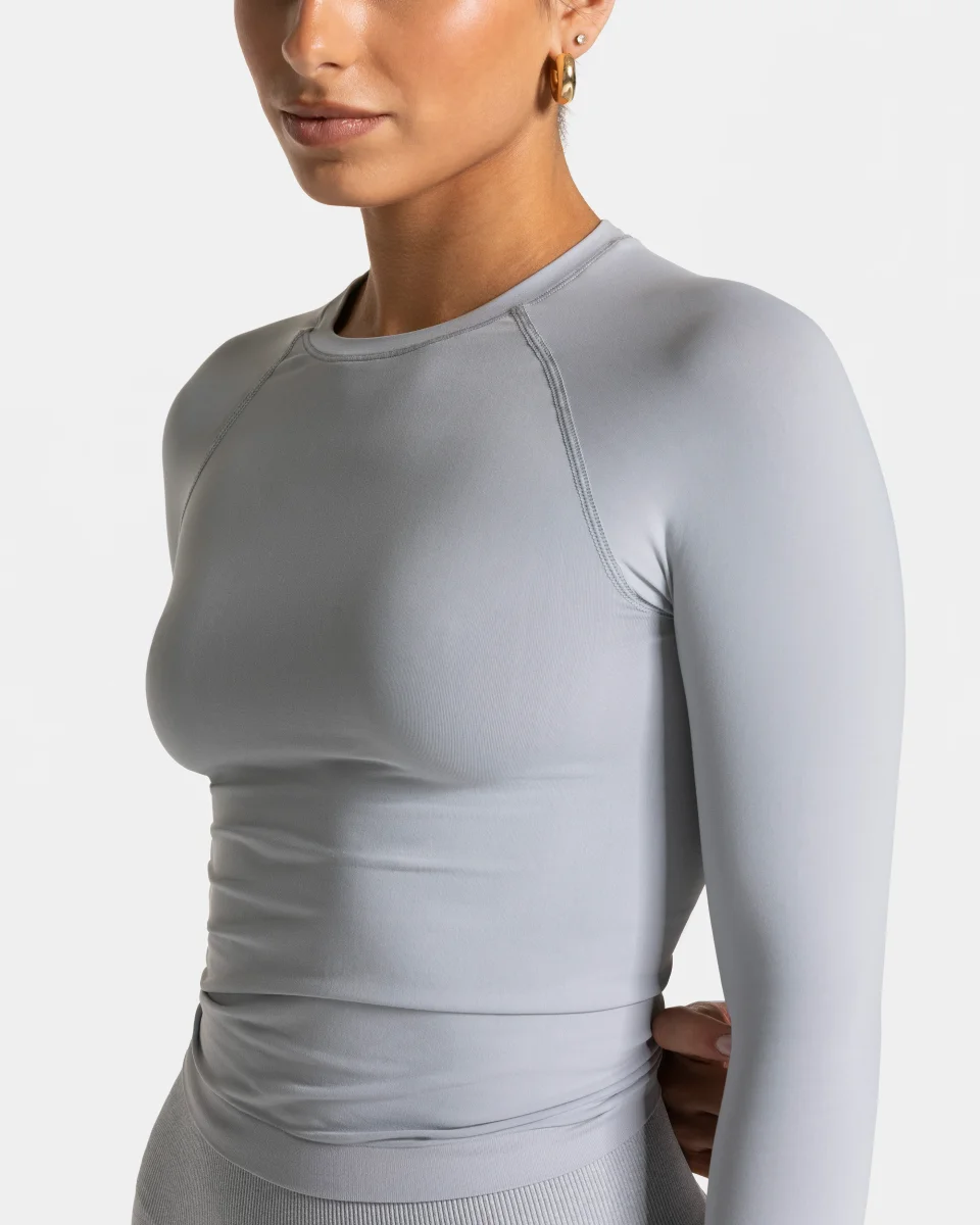 Das Timeless Pro Longsleeve in Hellgrau – second-skin feeling, but better. Ultraleicht, butterweich und nahtlos für ein unvergleichliches Tragegefühl. Das atmungsaktive Material schmiegt sich mühelos an deinen Körper, ohne einzuengen. Maximale Bewegungsfreiheit, pure Eleganz – ein Essential, das Maßstäbe setzt.