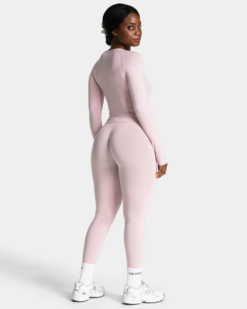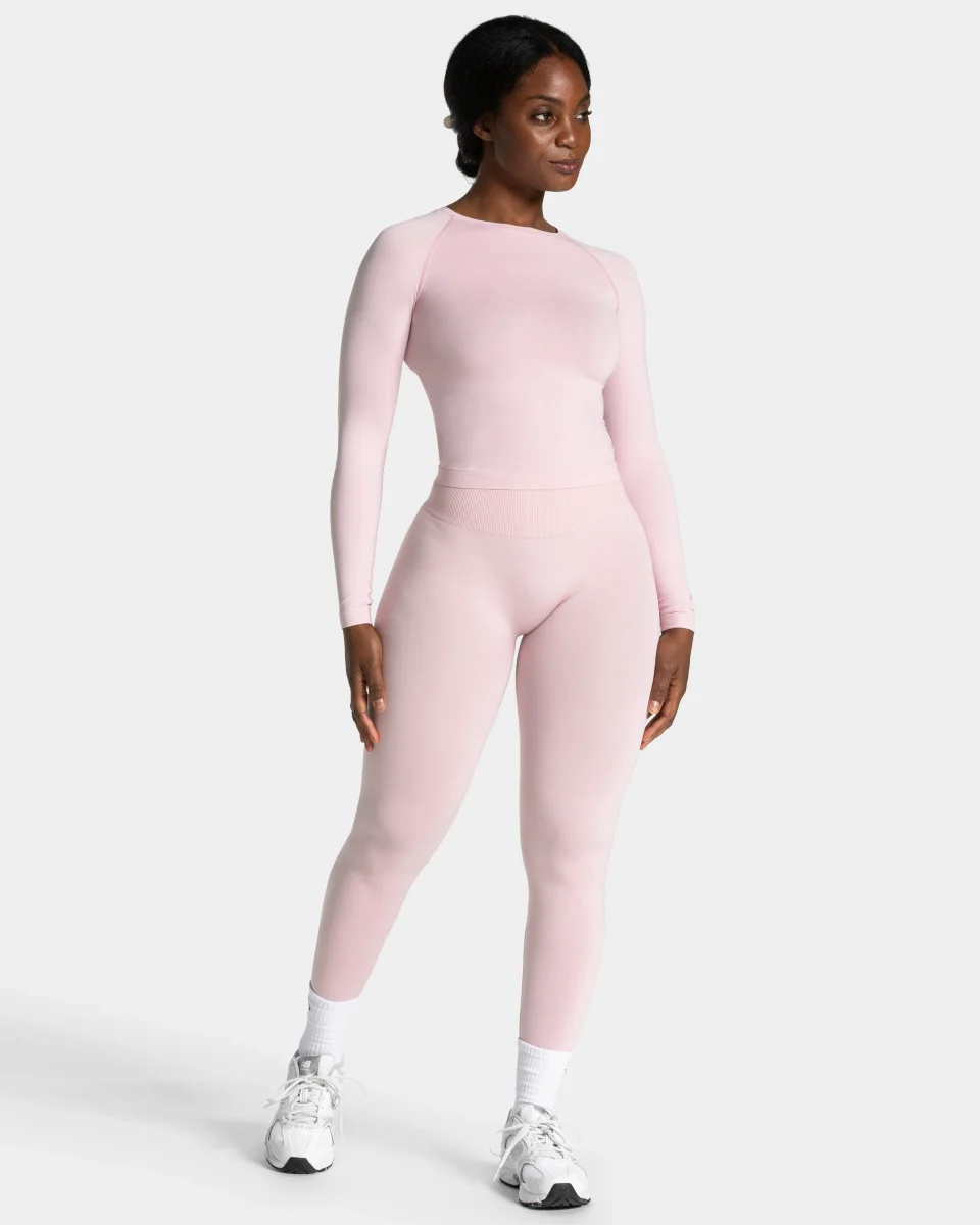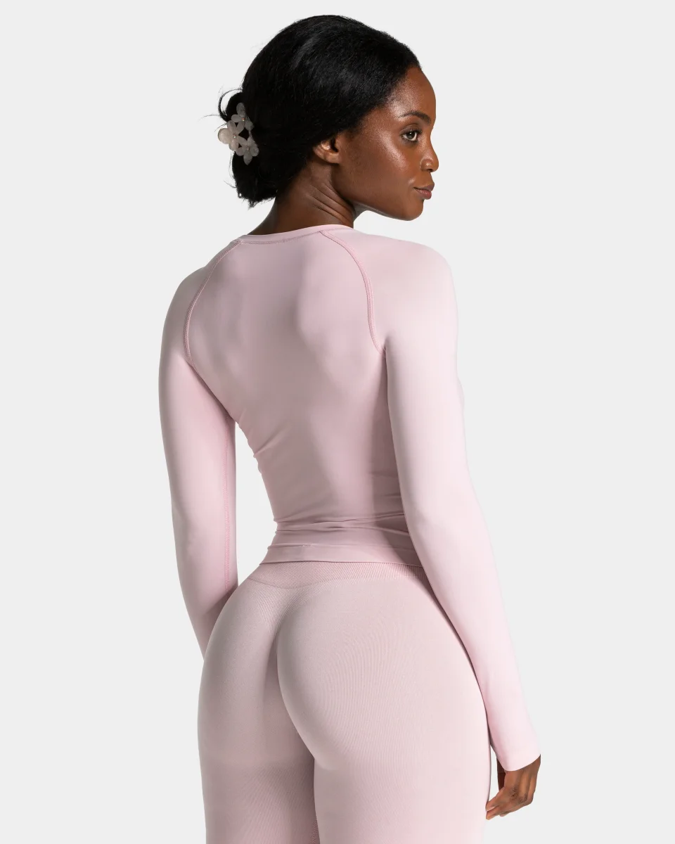 Das Timeless Pro Longsleeve in Rosa – second-skin feeling, but better. Ultraleicht, butterweich und nahtlos für ein unvergleichliches Tragegefühl. Das atmungsaktive Material schmiegt sich mühelos an deinen Körper, ohne einzuengen. Maximale Bewegungsfreiheit, pure Eleganz – ein Essential, das Maßstäbe setzt.