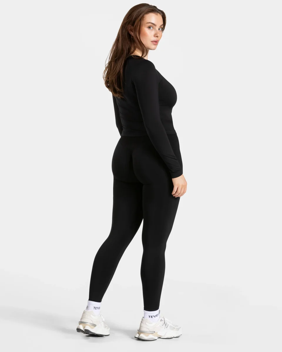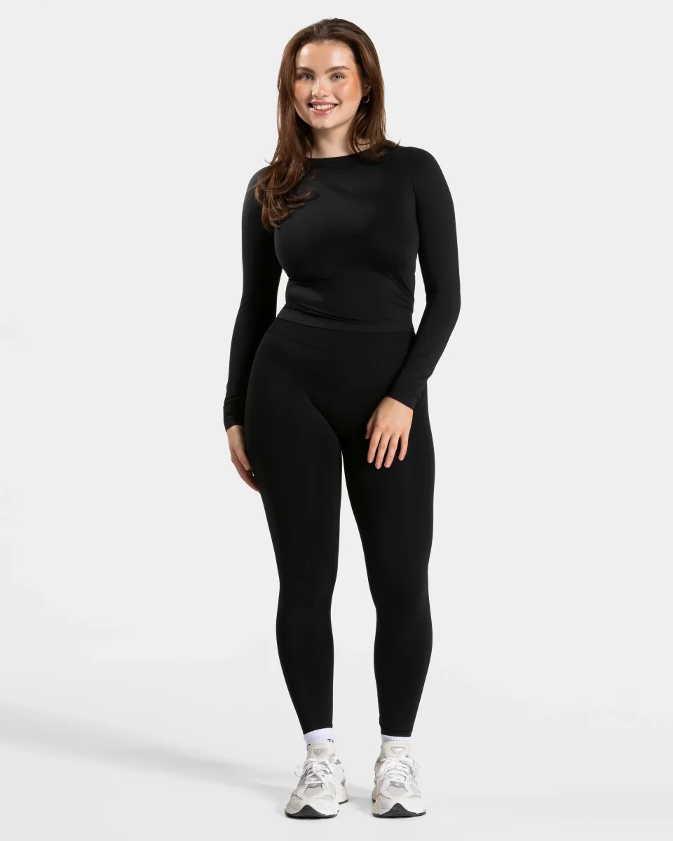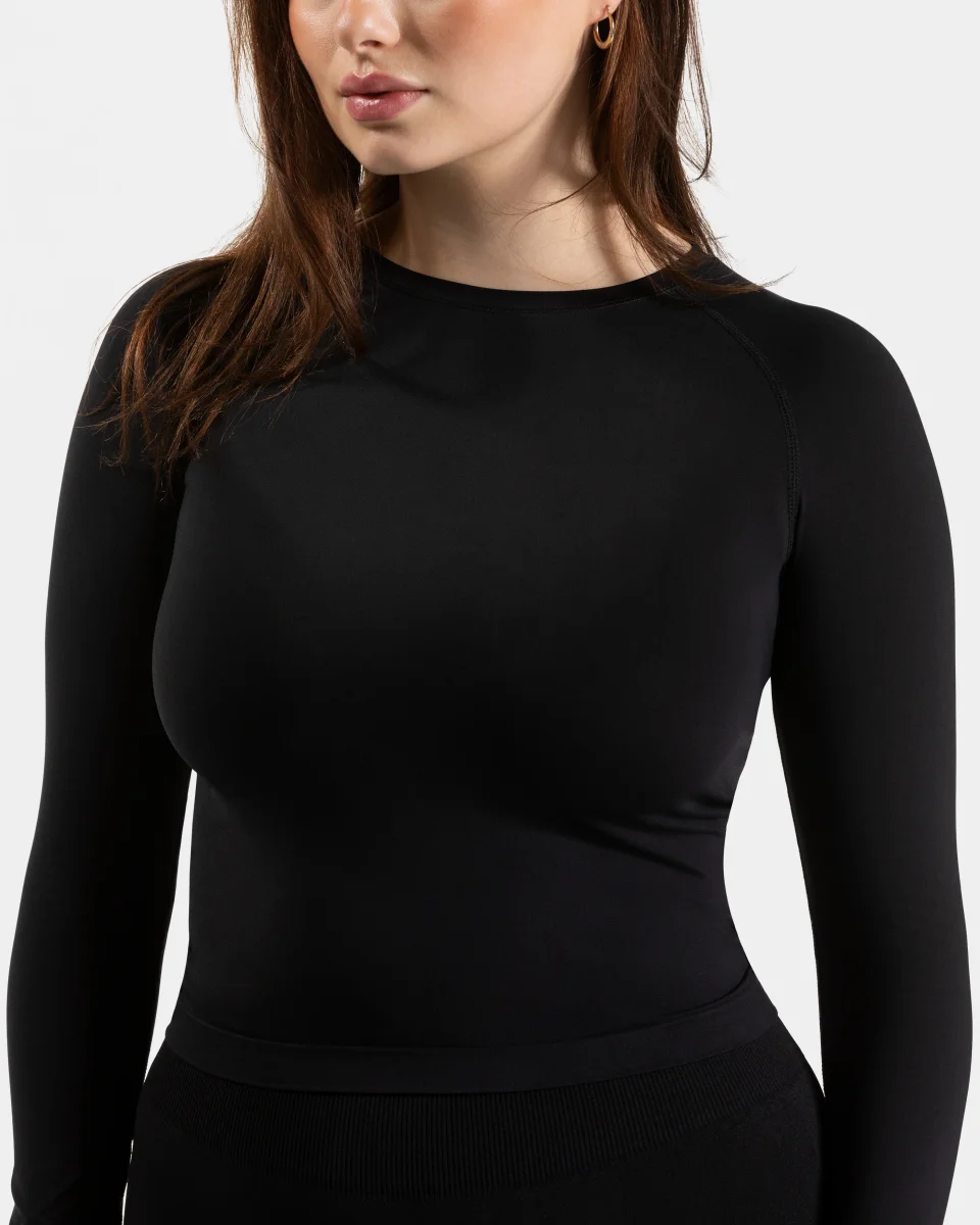 Das Timeless Pro Longsleeve in Schwarz – second-skin feeling, but better. Ultraleicht, butterweich und nahtlos für ein unvergleichliches Tragegefühl. Das atmungsaktive Material schmiegt sich mühelos an deinen Körper, ohne einzuengen. Maximale Bewegungsfreiheit, pure Eleganz – ein Essential, das Maßstäbe setzt.
