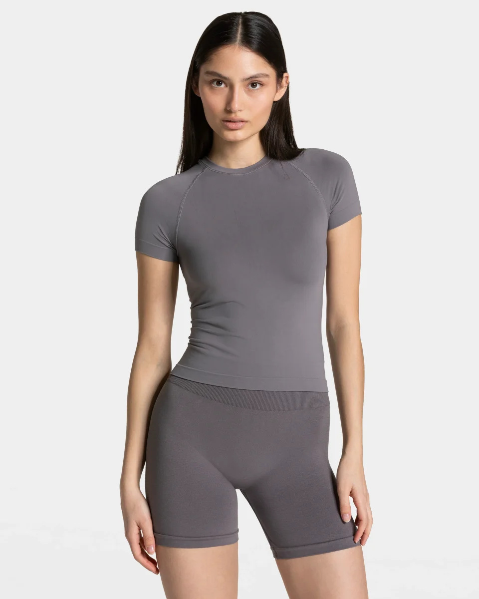 Das Timeless Pro T-Shirt in Graphit – second-skin feeling, but better. Ultraleicht, butterweich und nahtlos für ein unvergleichliches Tragegefühl. Das atmungsaktive Material schmiegt sich mühelos an deinen Körper, ohne einzuengen. Maximale Bewegungsfreiheit, pure Eleganz – ein Essential, das Maßstäbe setzt.
