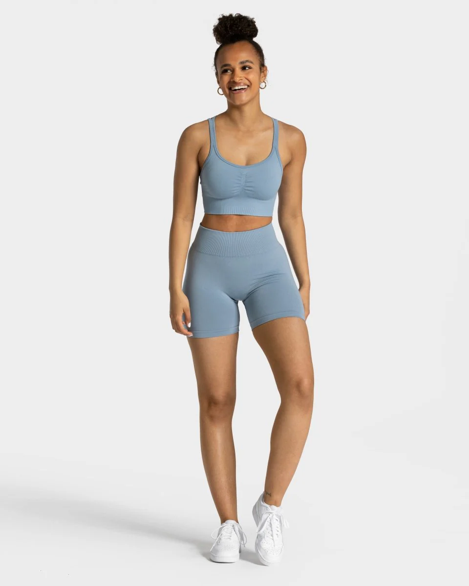 Die Timeless Scrunch Short Stahlblau gibt dir mit ihrem klassischen Stil die Möglichkeit, diese vielfältig zu kombinieren. Sowohl der Scrunch am hinteren Teil der Shorts als auch der Bund betonen deine Kurven optisch und sorgen für ein angenehmes Tragegefühl.