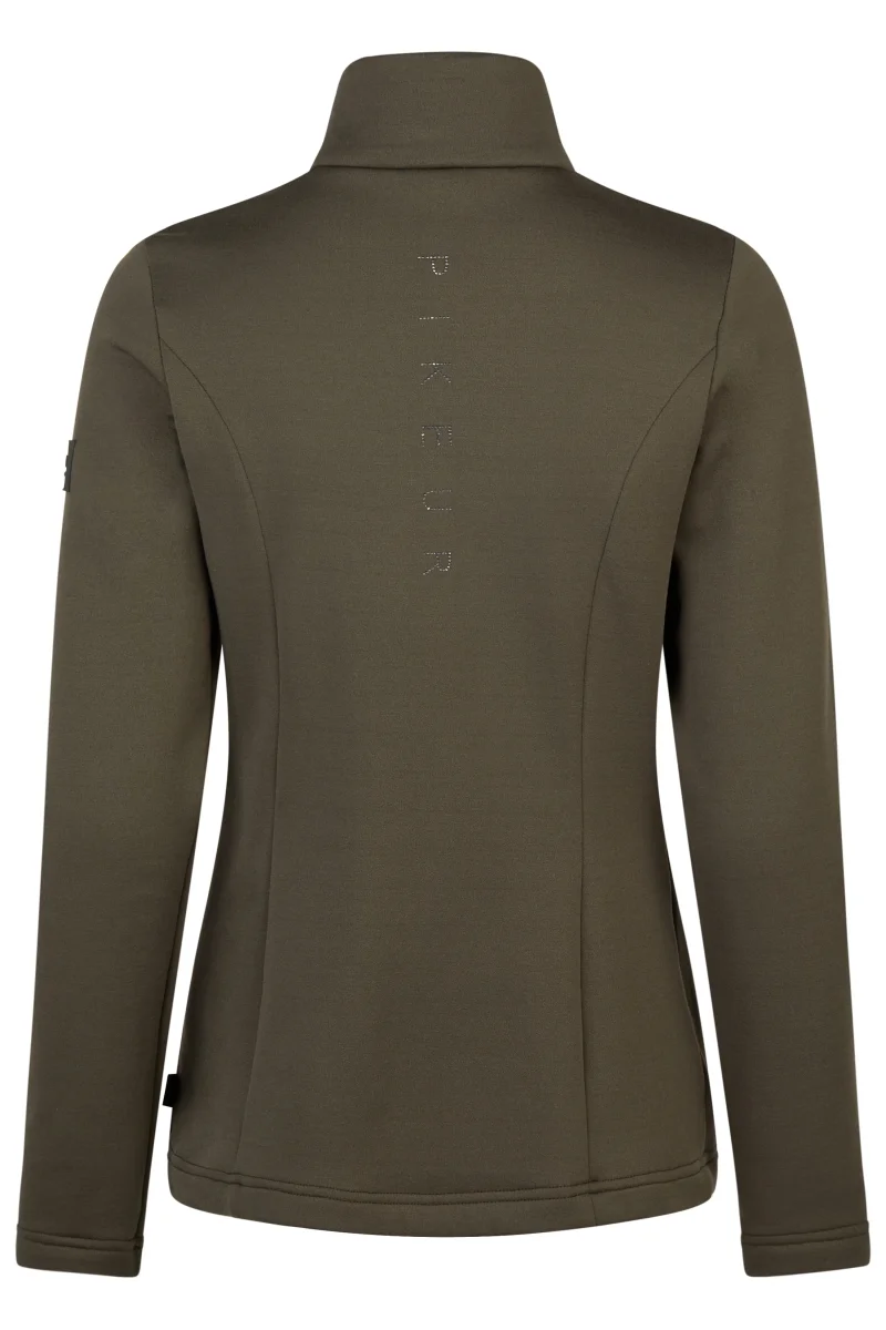 Descriptif Veste polaire Polartec à col montant Tissu polaire Polartec extensible dans les 4 sens Fonction chauffante maximale Coupe-vent et absorbant la transpiration Fermetures éclair à double sens et poches en métal Étiquette Pikeur au dos Patch en silicone sur la manche Matériau 58 % POLYESTER, 33 % POLYAMIDE, 9 % ÉLASTHANNE